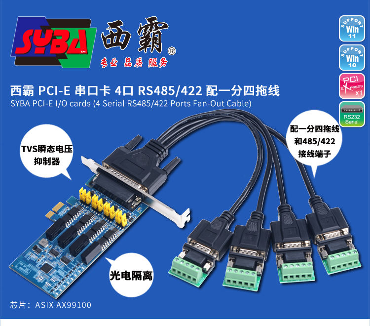 西霸E1-PCE852-4S PCI-E转RS485/RS422扩展卡 4口 带光电隔离