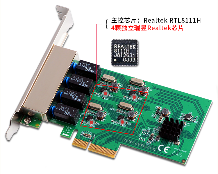 西霸E2-PCE8111H-4P PCI-E转千兆网卡 4口 Realtek RTL8111H
