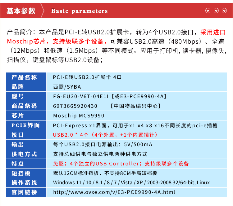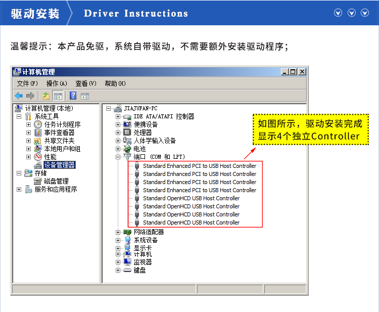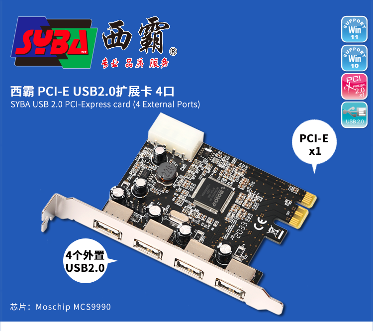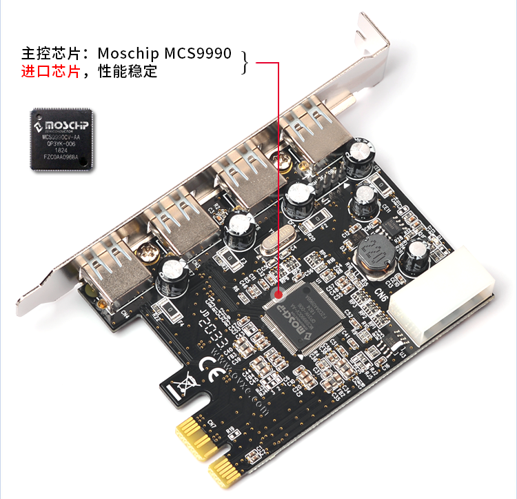 Moschip_MCS9990芯片!此型号安装后在设备管理器显示为4个独立控制器,稳定耐用!